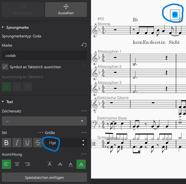 The size of the D.S. and coda symbols also cannot be changed.